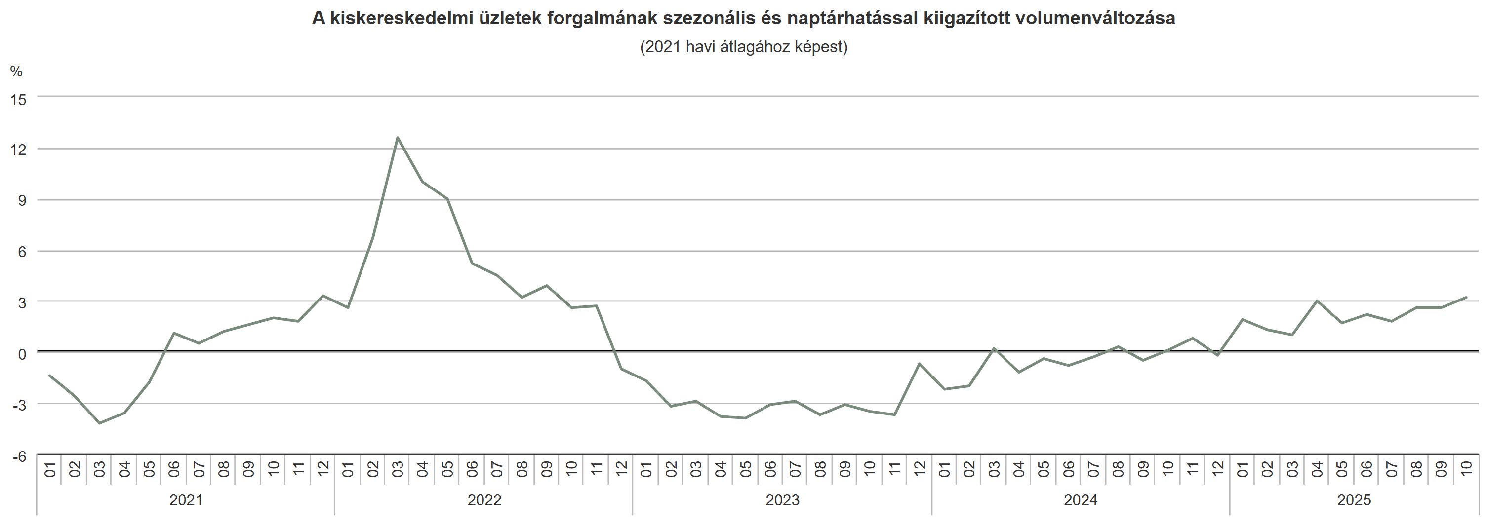 A kiskereskedelmi forgalom bár nőtt idén, de még a reálbér-növekedést sem érte utol, csak 3,6%-kal volt nagyobb, mint egy éve. Ezzel sikerült elérni, hogy 2021 óta kemény 3,2%-kal nagyobb a kiskereskedelmi volumen. Újabb sikersztori. Érdemes megnézni az alábbi grafikont, mennyire látszik a választási osztogatás hatása 2022 tavaszán, aminek aztán az európa-rekord infláció lett a következménye: