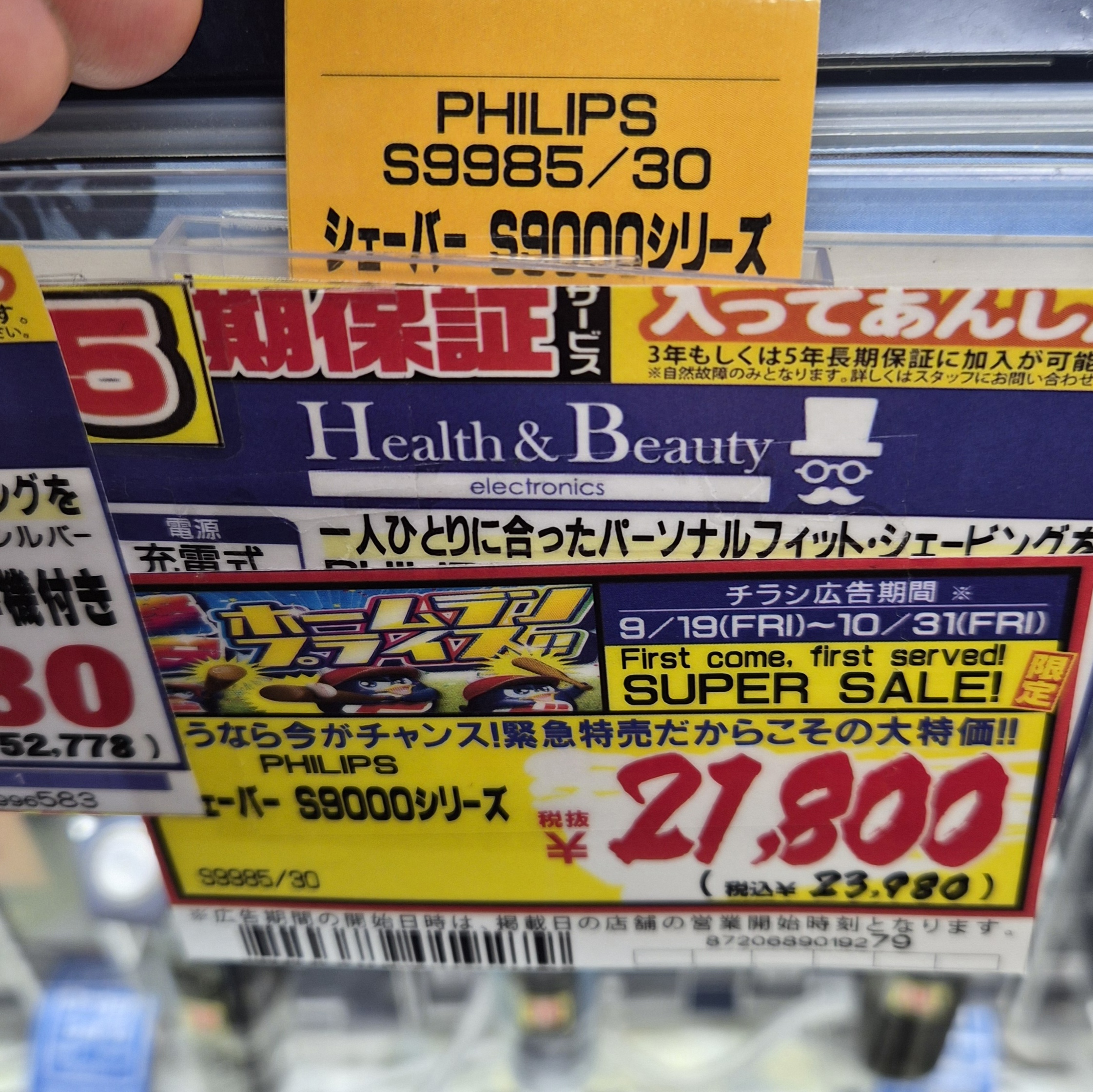 Philips 9000-es villanyborotva áfával volt 24 ezer jen, azaz 52 ezer forint. Máshol láttam 19 ezer jenért is ugyanilyet. Az 5000-es sorozat 22 ezer forint volt, nálunk ennyibe kerül a hozzávaló cserefej.