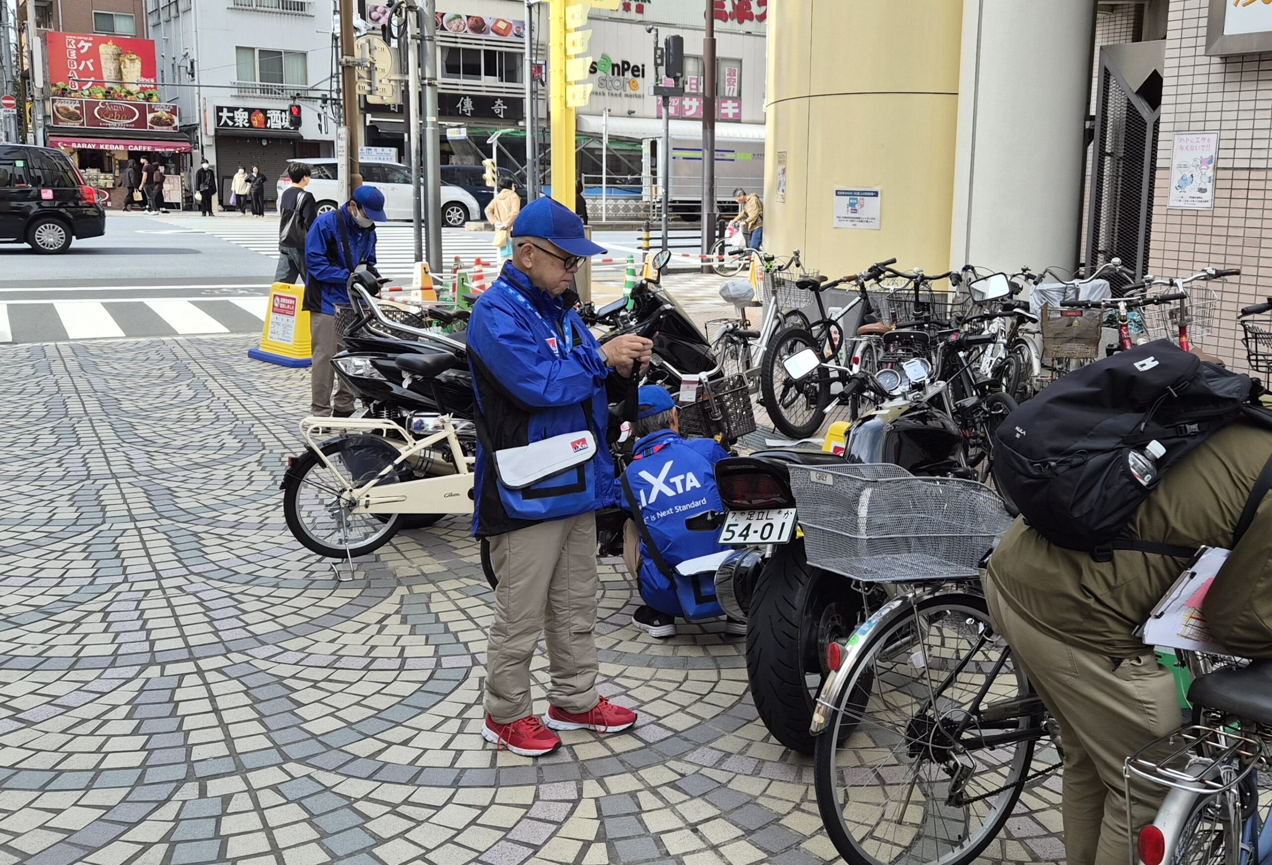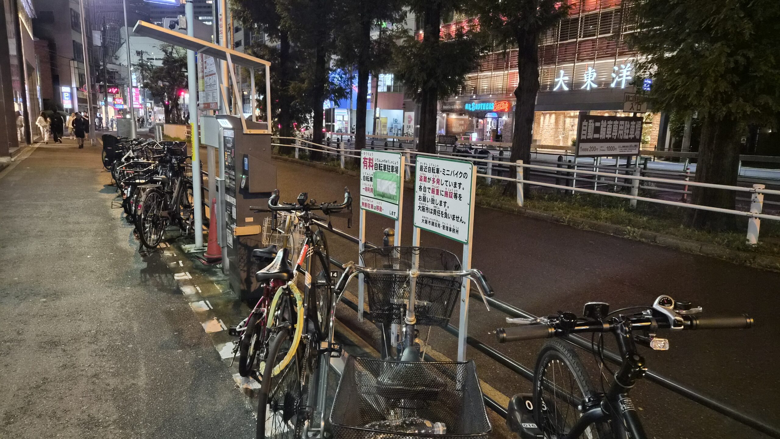 Oszakában teljes rend volt, Tokióban már azért láttunk néhány szétdobált kerékpárt. Viszont büntetik is őket, az alábbi képen éppen a tilosban parkoló kerékpárokat büntetik Tokióban: