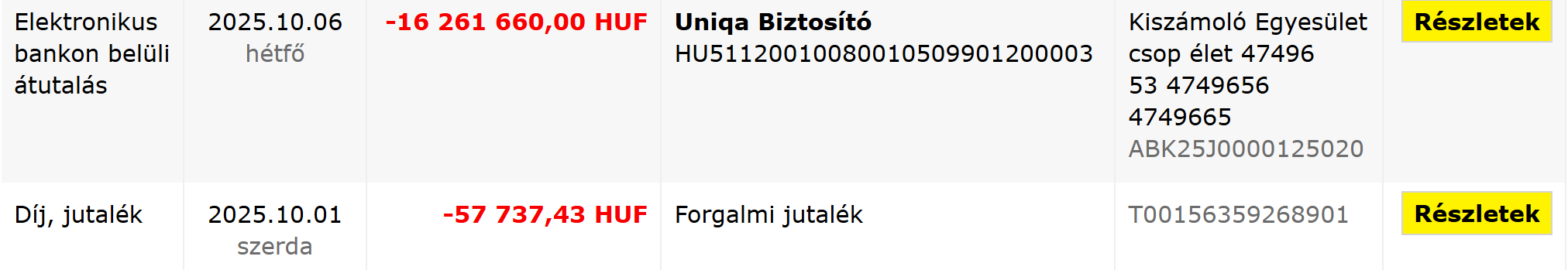 A befizetések: